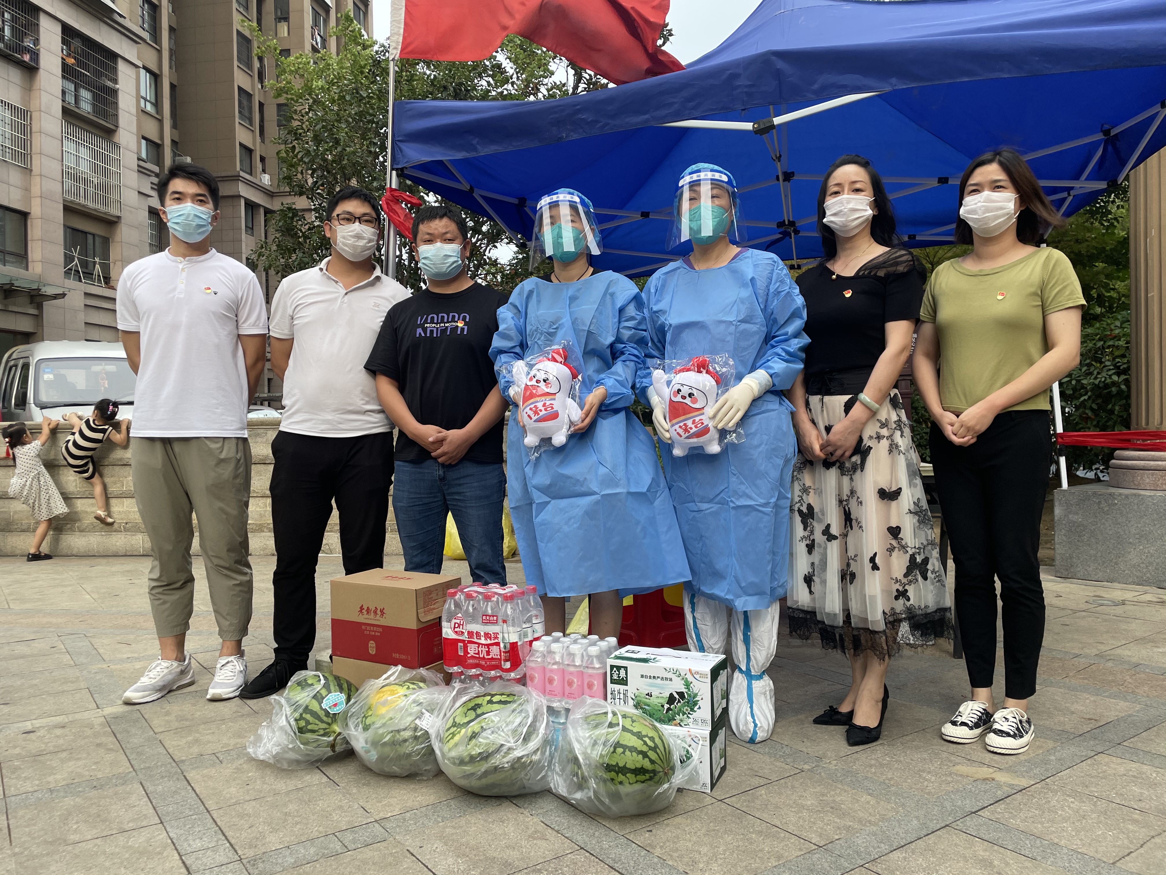 安鹽商貿(mào)公司黨支部為核酸采集人員精心準(zhǔn)備了礦泉水、蘇打水、紅茶飲品、牛奶和西瓜,在烈日里送去一絲絲清涼,并叮囑她們在高溫下為保護(hù)大家生命安全和身體健康的同時(shí)一定要做好自我防護(hù)。