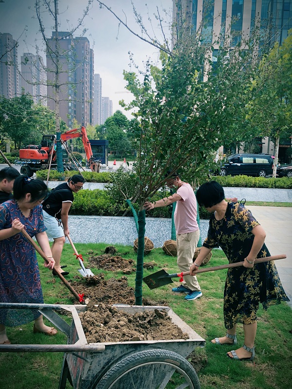上午9時許,全體黨員準時來到徽鹽世紀廣場商辦樓前,開始植樹活動?;顒蝇F(xiàn)場,黨員們不顧天氣炎熱,相互協(xié)作,配合默契,展現(xiàn)出一片熱火朝天的勞動場景。搬運樹苗、揮鍬挖坑、填土栽種……經過1個多小時的努力,六株蔥郁的紫薇屹立于商辦樓前,為徽鹽世紀廣場增添了一道亮麗的風景。隨后,大家還小心翼翼地在樹上系上“機關第一黨支部種植”的銘牌,以此要求全體黨員養(yǎng)護好這些樹木,號召大家自覺養(yǎng)成植綠護綠的良好習慣。