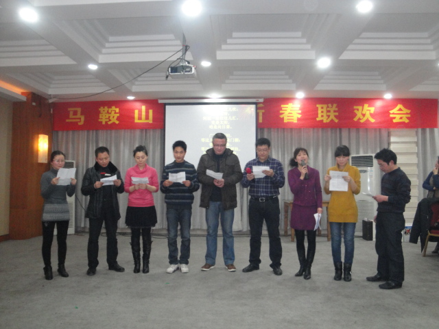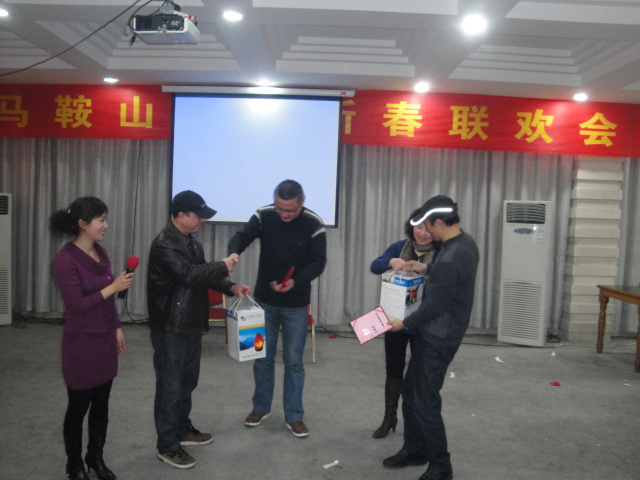 聯(lián)歡會在歡快的春節(jié)序曲中開始,首先是公司經(jīng)理孫家倫發(fā)表了熱情洋溢的講話,感謝所有員工在過去的一年里所付出努力,表示了對職工家屬的熱烈歡迎,同時號召大家在新的一年里要繼續(xù)給力,爭取實現(xiàn)公司的全面工作再上一個新臺階,公司工會主席王本琴帶領(lǐng)四位工會委員集體給大家拜年。此次聯(lián)歡會不僅有二重唱、舞蹈、朗頌等文藝表演,還有公司員工被分成兩隊的猜成語、夾汽球跑、扔羽毛球等競技比賽項目,另外穿插參與游戲、摸獎等環(huán)節(jié),整場聯(lián)歡會暖意融融,高潮迭起。由員工及家屬表演的詼諧舞蹈《玫瑰》將氣氛推向高潮,歌聲、笑聲、歡呼聲在這里聚集,友情、感情、豪情在這一刻升華。