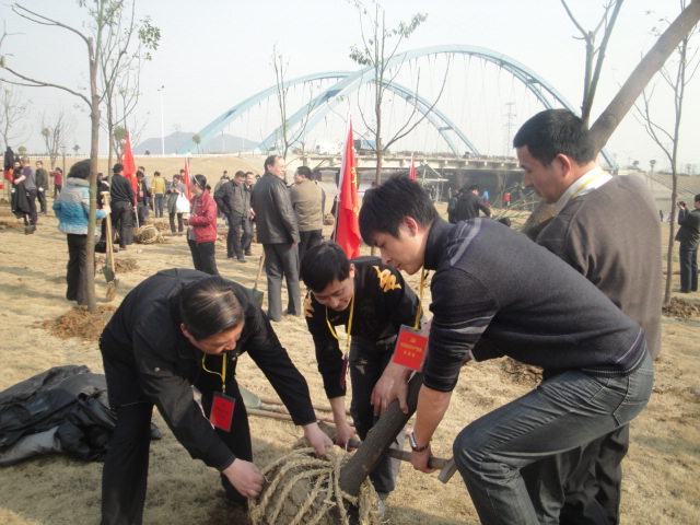 下午3點,黨員同志們打出志愿者旗幟,佩戴志愿者胸牌,自備勞動工具,來到吉慶廣場。他們有的挖坑、有的提水、有的抬樹苗,在采石河岸揮汗如雨。這次活動是市直工委今年組織的第一次大規(guī)模集中活動,勞動現(xiàn)場熱火朝天,很快一片志愿者林就初具規(guī)模。