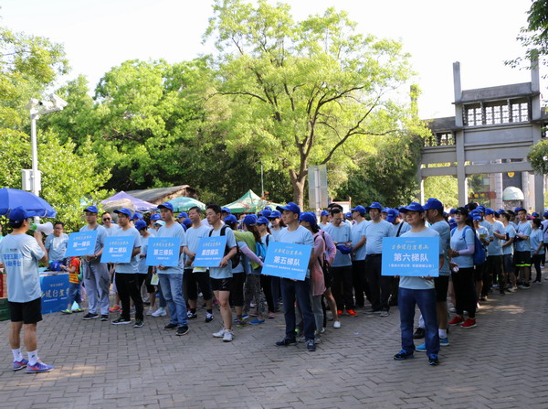 當(dāng)日七時(shí)許,300多名“藍(lán)色大軍”來(lái)到大蜀山北門列陣以待,在山巒翠柏的映襯下,成為一道亮麗風(fēng)景線。