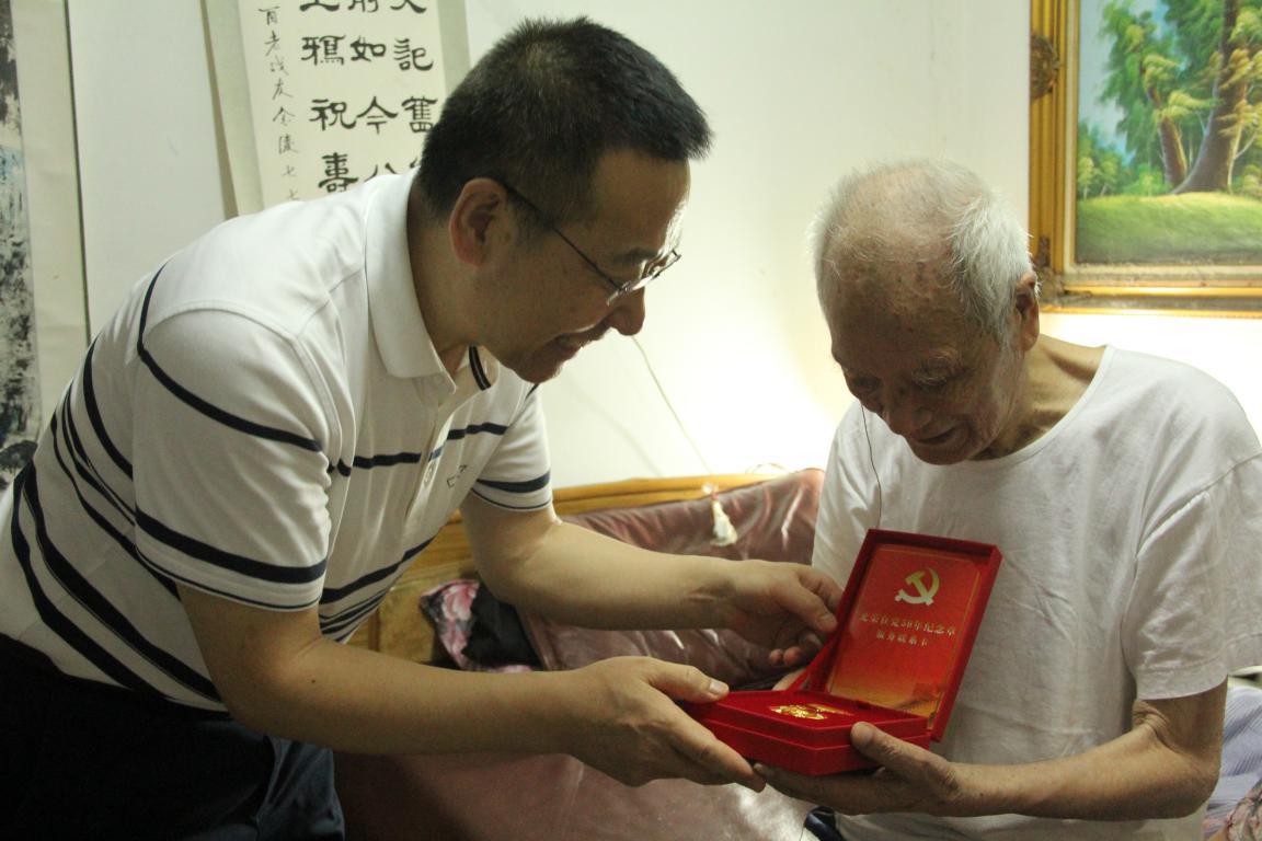 省鹽業(yè)集團黨委書記、董事長馬占文來到省鹽業(yè)公司離休干部、95歲老黨員董仁發(fā)家中,與老人及其家屬親切交談,詳細詢問和了解老人的健康生活狀況以及生活中存在的困難,聽老人講當(dāng)年的革命故事、工作經(jīng)歷,感謝老人對黨和國家多年來的忠誠和擁護,為老人頒發(fā)“光榮在黨50周年”紀(jì)念章。集團黨委委員、副總經(jīng)理、職工董事顏宗華先后來到老黨員王玉華、張富貴家中走訪慰問,為他們送上黨組織的關(guān)切和祝福,并為兩位老黨員佩戴“光榮在黨50周年”紀(jì)念章。