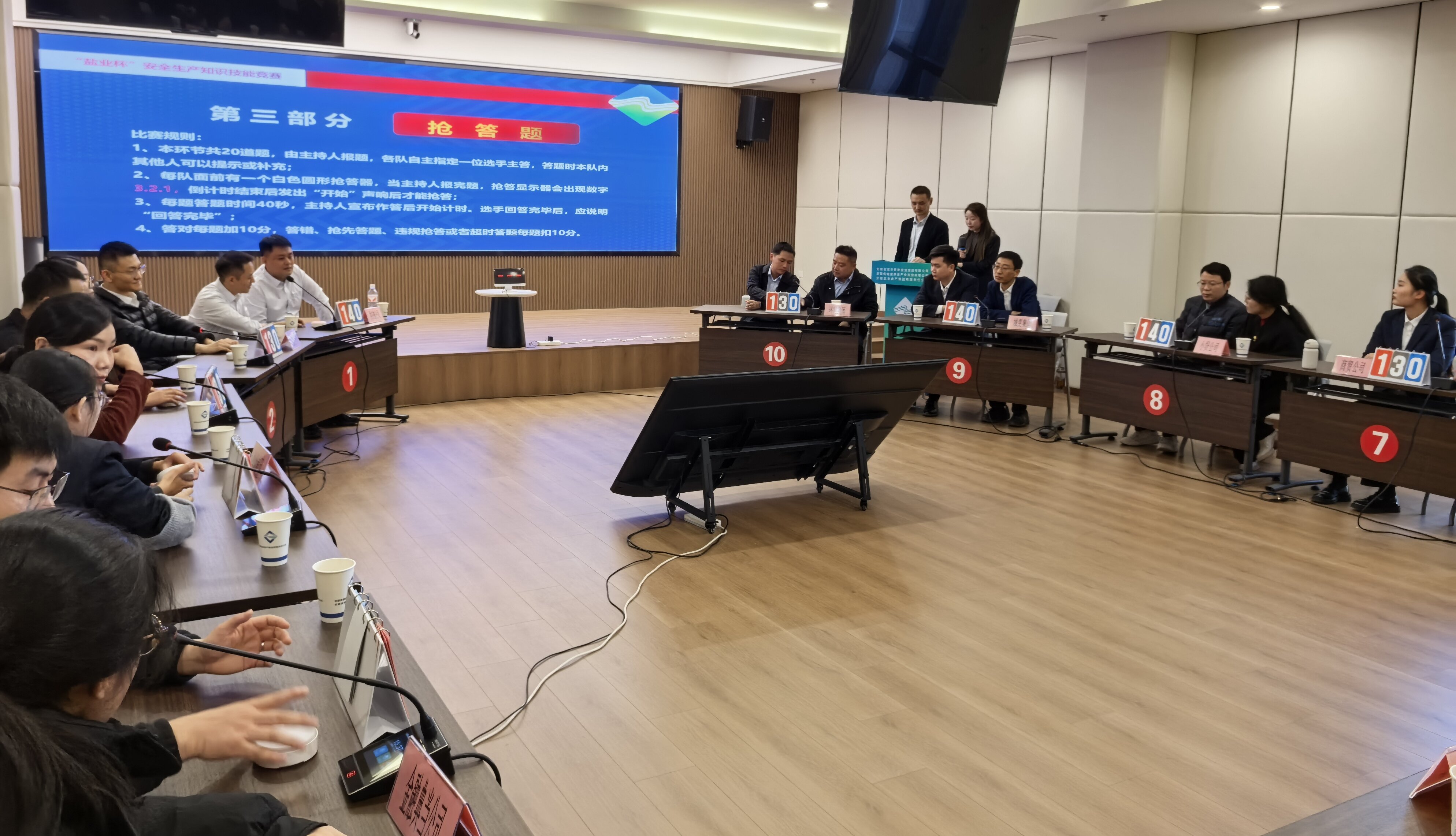 本次競賽以“人人講安全,個個會應急——查找身邊安全隱患”為主題,聚焦政策法規(guī)和實踐操作,旨在全面提升干部職工對危險、有害因素的辨識能力與應急處置技能,堅決防范生產安全事故發(fā)生。經過前期籌備,來自集團所屬企業(yè)的10支代表隊同臺競技,各代表隊冷靜答題、奮勇爭先?!案黠@身手”個人必答和“齊心協(xié)力”團隊必答環(huán)節(jié)穩(wěn)扎穩(wěn)打,展現扎實知識儲備;“爭分奪秒”搶答環(huán)節(jié)分秒必爭,考驗快速反應能力;“勇攀高峰”風險環(huán)節(jié)深入分析,實現理論實踐深度融合。尤其在風險題環(huán)節(jié),選手們根據實際案例查風險、找隱患,展現了對政策法規(guī)知識的準確理解和解決實際問題的良好能力。