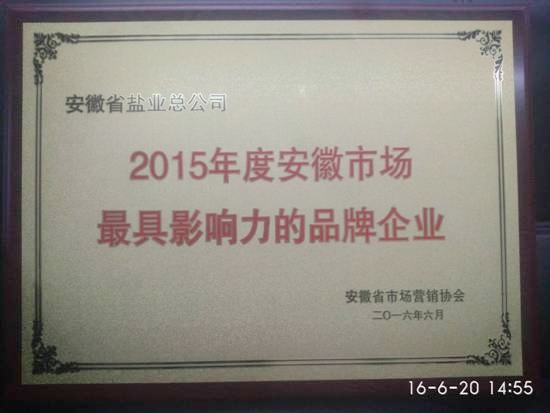省公司榮獲“2015年度安徽市場最具影響力的品牌企業(yè)”稱號