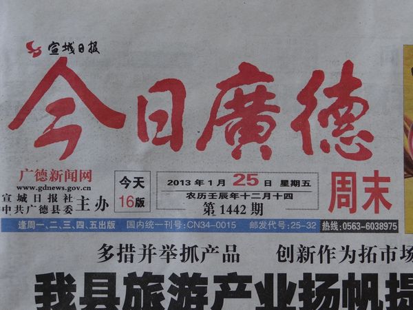 摘自2013年1月25日《宣城日報(bào)·今日廣德》2版