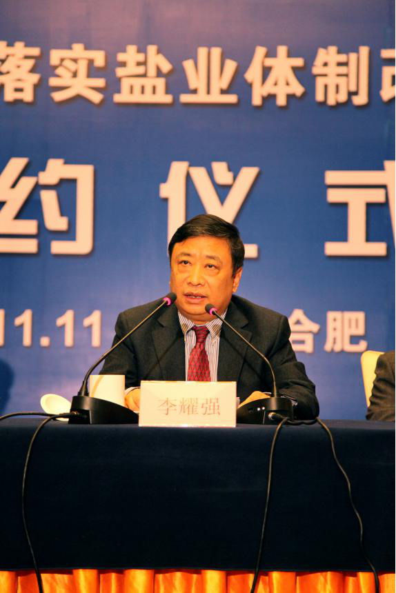 安徽省鹽業(yè)總公司黨委書記、總經(jīng)理詹先豪在會上發(fā)言