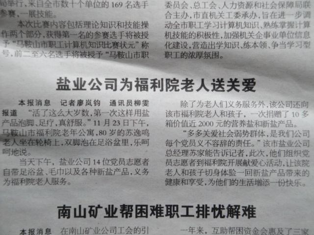 《皖江晚報》:鹽業(yè)公司為福利院老人送關(guān)愛