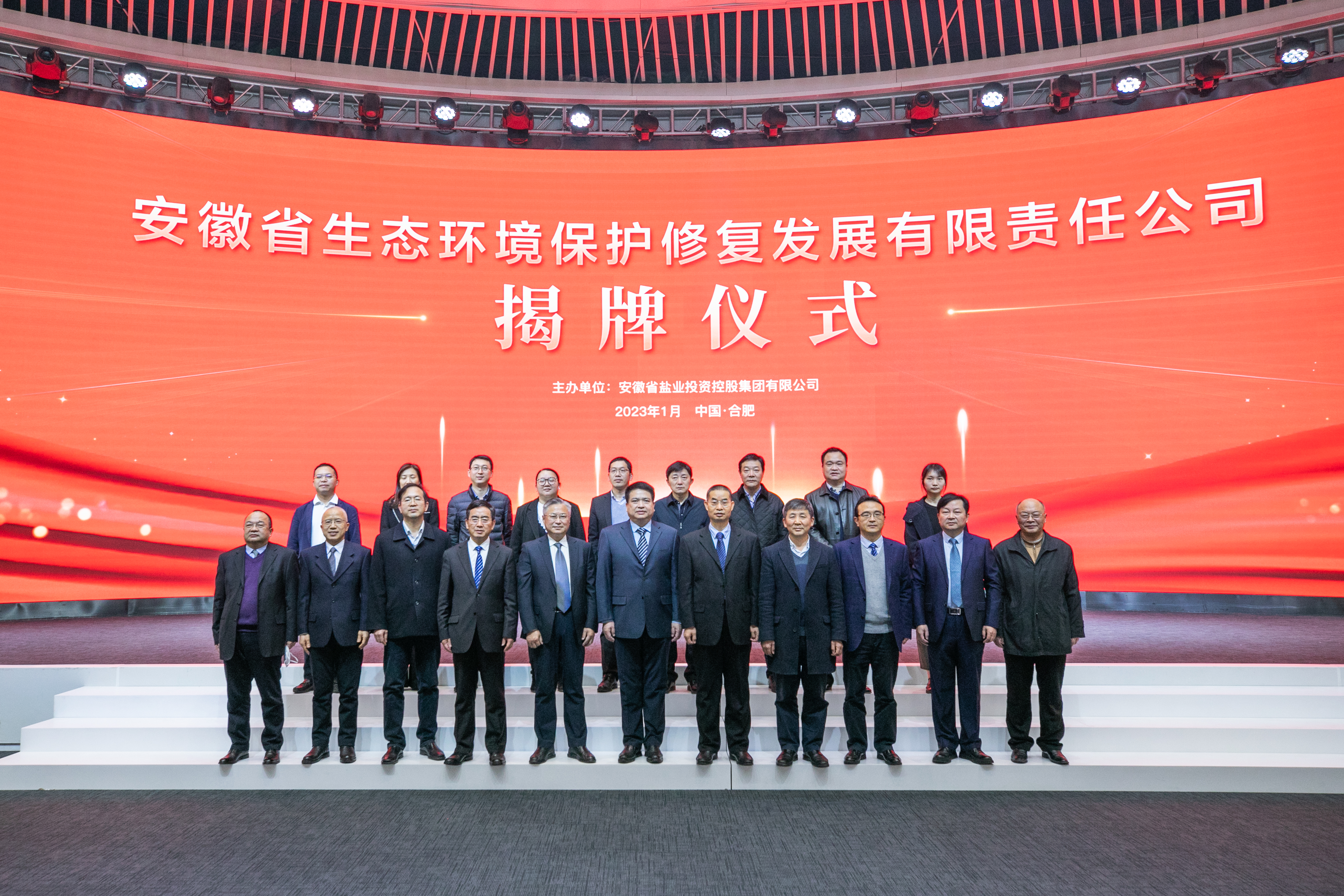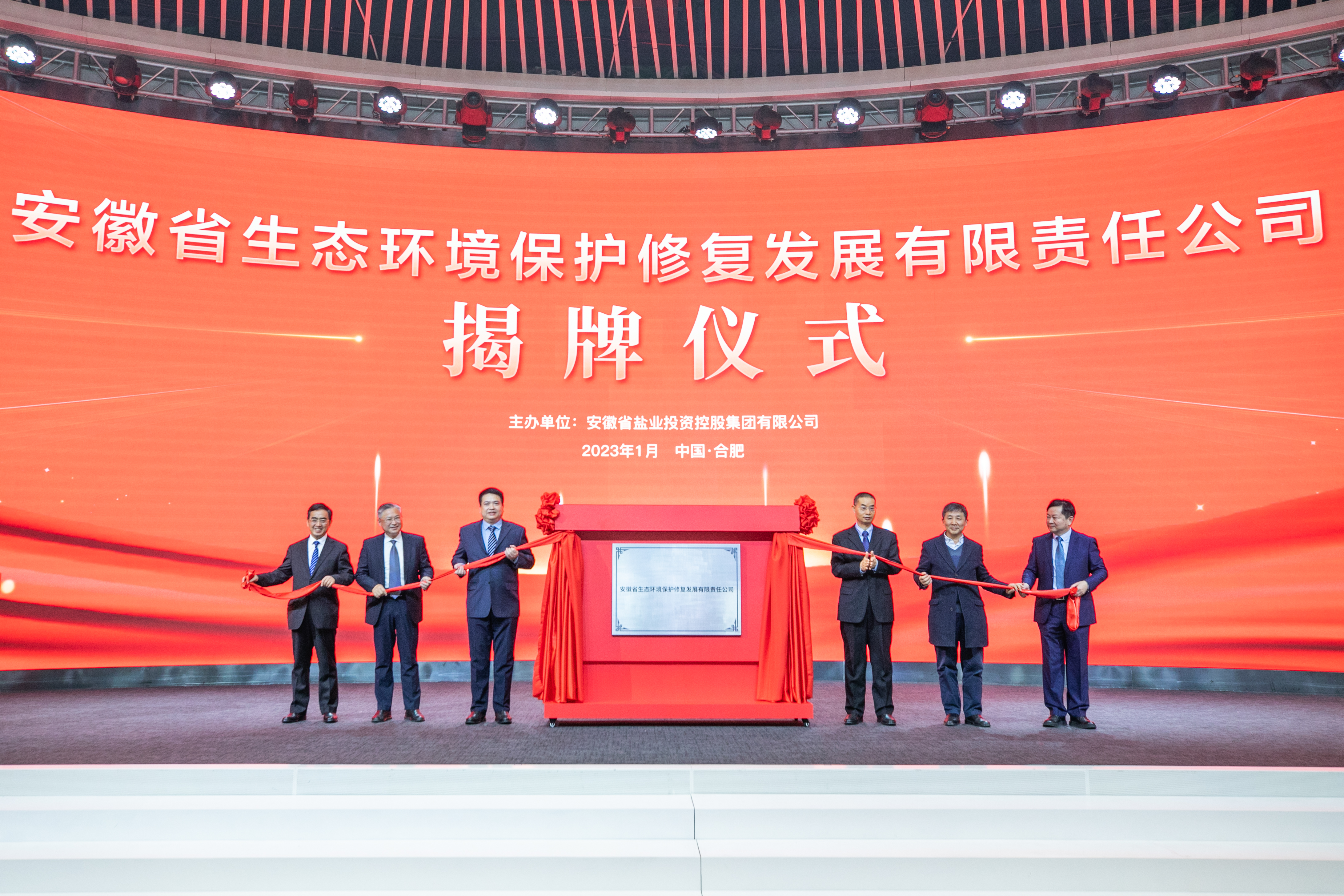 1月11日上午,安徽省生態(tài)環(huán)境保護修復發(fā)展有限責任公司揭牌儀式在合肥市高新區(qū)中安創(chuàng)谷科技園全球路演中心舉行。省自然資源廳一級巡視員夏炎,省生態(tài)環(huán)境廳二級巡視員阮敏,合肥市高新區(qū)黨工委書記、管委會主任宋道軍,省鹽業(yè)集團黨委書記、董事長羅太忠,黨委副書記、總經理、董事王思軍,安徽省生態(tài)環(huán)境保護修復發(fā)展有限責任公司執(zhí)行董事、總經理王剛出席儀式并為公司揭牌。儀式由王思軍主持。