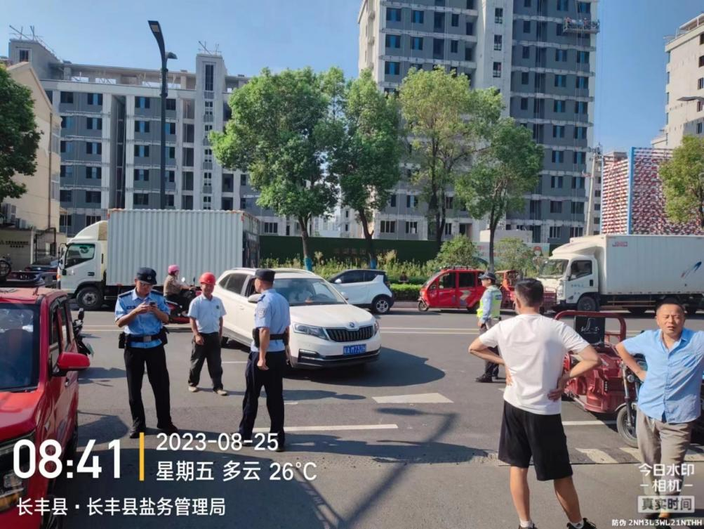 8月25日清晨,前來購買食鹽的車輛排成了長龍,為了保障運鹽車輛通行暢通,各縣(市)鹽業(yè)公司聯(lián)系交警維持秩序。