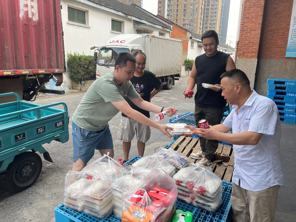 天氣炎熱、排隊等候時間長,合肥市公司為客戶和駕駛員免費提供礦泉水和盒飯。