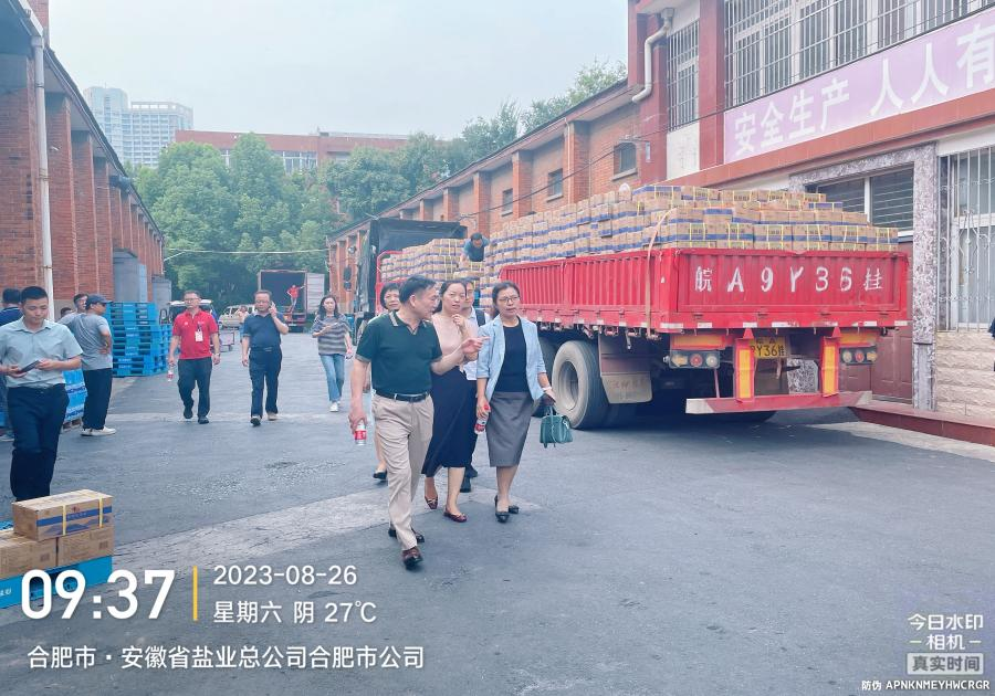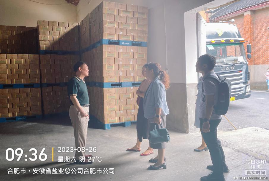 8月26日上午省經(jīng)信廳戴琳琳處長、市經(jīng)信局總工郭梅赴合肥市公司現(xiàn)場調(diào)研,詳細了解兩日來鹽品銷售及儲備鹽庫存情況,對合肥鹽業(yè)在搶購期間應急保供、穩(wěn)定市場、充足儲備鹽庫存工作給予了充分肯定,同時要求合肥市公司繼續(xù)以保民生為首要任務,密切關(guān)注市場動態(tài)并及時上報。