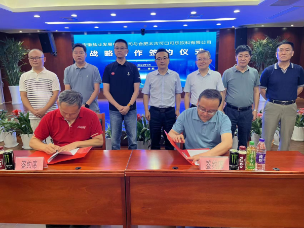 9月5日下午,安徽鹽業(yè)發(fā)展有限公與合肥太古可口可樂飲料有限公司戰(zhàn)略合作簽約儀式成功舉行。省鹽業(yè)集團(tuán)黨委委員、副總經(jīng)理、鹽業(yè)發(fā)展公司黨委書記、董事長王奇,合肥太古可口可樂飲料有限公司總經(jīng)理虞曉峰出席簽約儀式,鹽業(yè)發(fā)展公司、合肥太古可口可樂公司有關(guān)領(lǐng)導(dǎo)見證簽約。簽約儀式由發(fā)展公司黨委副書記、總經(jīng)理宇豐主持。