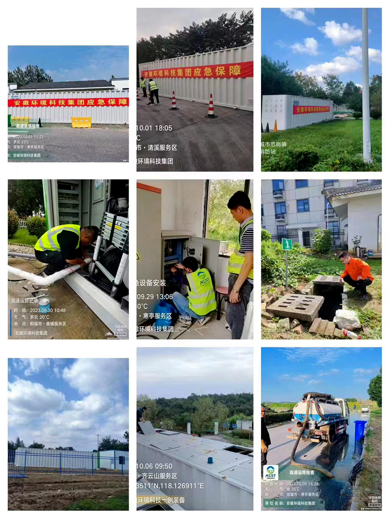 2023年中秋、國慶假期,是安徽省生態(tài)環(huán)境產(chǎn)業(yè)集團(tuán)掛牌后的第一個(gè)長假。為確保全省高速服務(wù)區(qū)污水處理項(xiàng)目假日期間穩(wěn)定達(dá)標(biāo)運(yùn)營,保障人民群眾舒心出行,環(huán)境公司針對(duì)全省高速服務(wù)區(qū)高人流量、高運(yùn)維壓力的特點(diǎn),制定兩節(jié)期間運(yùn)維巡檢方案和巡檢值班表,抽調(diào)本部與各子項(xiàng)目公司30余人協(xié)同作戰(zhàn),在人流量大和生態(tài)敏感區(qū)的重點(diǎn)服務(wù)區(qū)安排專人駐場(chǎng)負(fù)責(zé)污水站點(diǎn)運(yùn)維,在各站點(diǎn)提前儲(chǔ)存藥劑和維修物品,同時(shí)緊急調(diào)配三臺(tái)一體化設(shè)備安裝在寒亭、香鋪、清溪三個(gè)大流量服務(wù)區(qū)以策萬全。