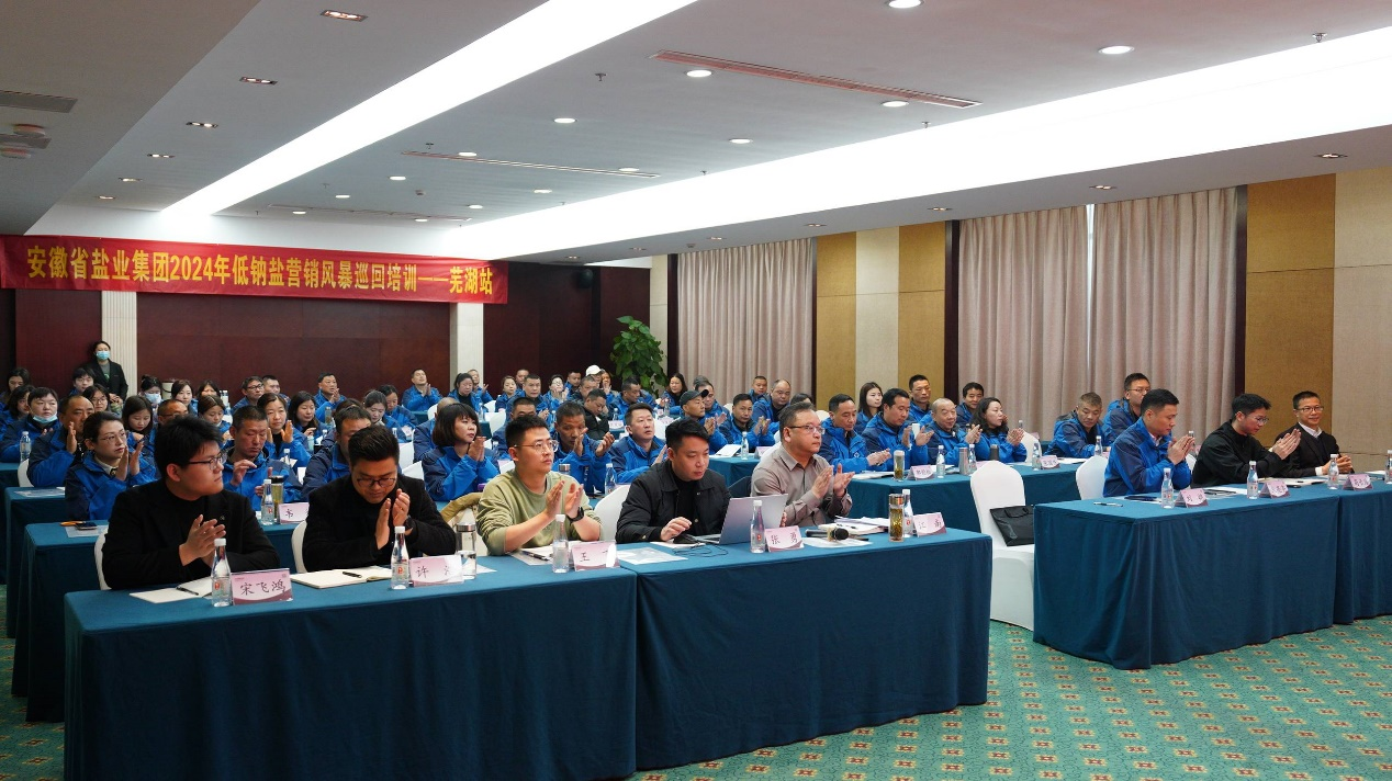 為進一步提升全體員工的營銷技能,提高低鈉鹽在市場供給中的比例和普及率, 3月28日上午,由安徽鹽業(yè)集團牽頭組織的2024年低鈉鹽營銷風暴巡回培訓——蕪湖站順利召開,蕪湖市縣公司共70余名職工參加培訓。