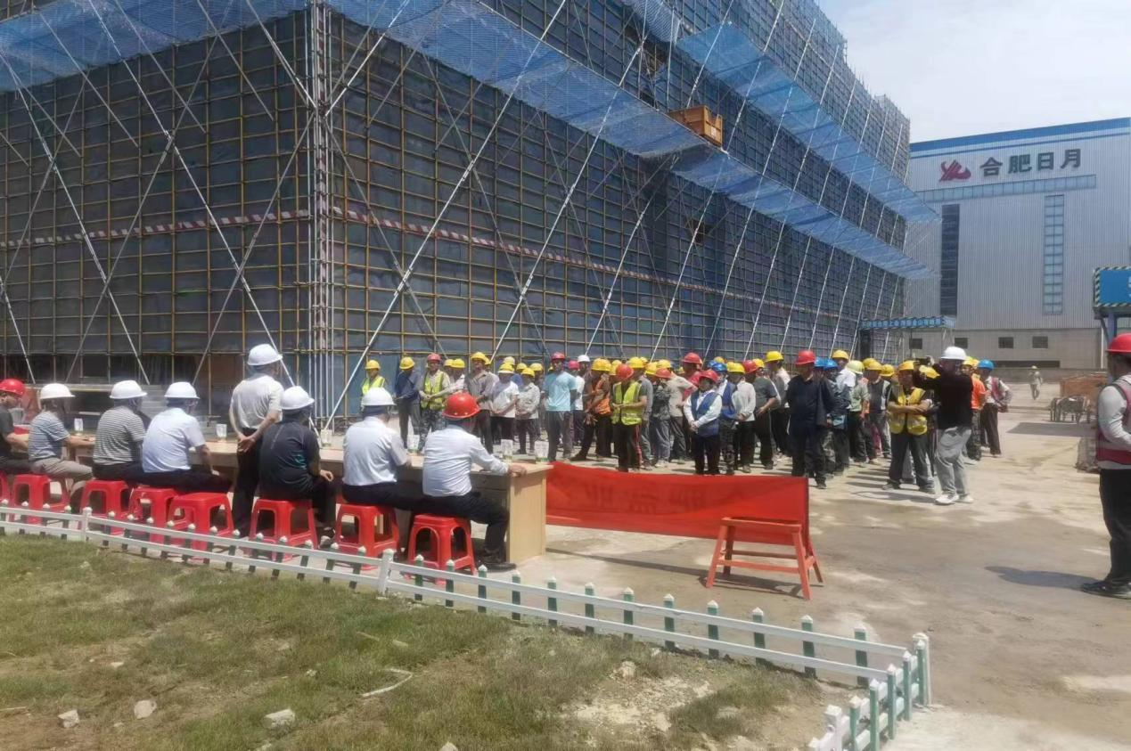 建設(shè)單位合肥市鹽業(yè)公司張鷹董事長宣布安全月啟動,并在啟動儀式上強(qiáng)調(diào):合肥鹽業(yè)冷鏈?zhǔn)称芳庸ぶ行捻?xiàng)目在各相關(guān)單位的相互配合下,在各位工友的辛勤勞動下,工程主體結(jié)構(gòu)已經(jīng)施工完成,對廣大一線施工人員的辛勤付出表示感謝。在第23個(gè)全國安全月來臨之際,應(yīng)該深刻認(rèn)識到安全的重要性。生命無價(jià),預(yù)防安全是每個(gè)人的責(zé)任。即將進(jìn)入高溫天氣,一定要在確保安全的前提下,控質(zhì)量,抓進(jìn)度,注意人身安全,平平安安的完成好冷鏈項(xiàng)目建設(shè)。