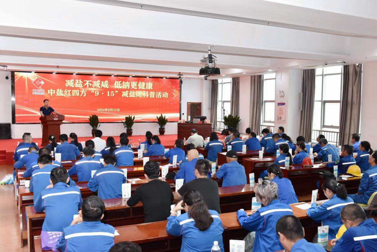 2024年9月的第二個周是第6個全國“915減鹽周”,為持續(xù)深入普及“人人行動,全民控鹽”的健康理念,9月12日上午,合肥市鹽業(yè)公司走進中鹽安徽紅四方股份有限公司開展“915減鹽周”科普宣傳活動,向職工群眾科普食鹽知識。