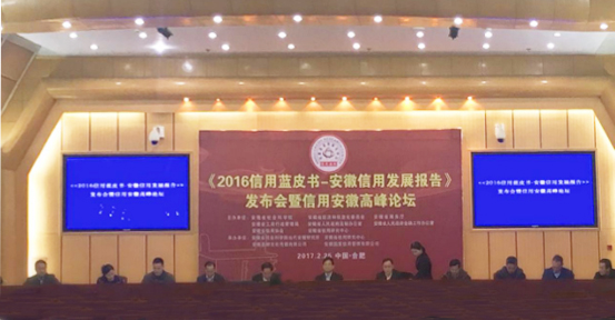 2017年2月25日,由安徽省社會(huì)科學(xué)院、安徽省經(jīng)濟(jì)和信息化委員會(huì)、安徽省商務(wù)廳、安徽省工商行政管理局、安徽省人民政府法制辦公室、安徽省人民政府金融工作辦公室、安徽省信用協(xié)會(huì)和安徽省信用研究中心聯(lián)合舉辦的《2016信用藍(lán)皮書(shū)——安徽信用發(fā)展報(bào)告》發(fā)布暨信用安徽高峰論壇在省人大會(huì)議中心召開(kāi)。