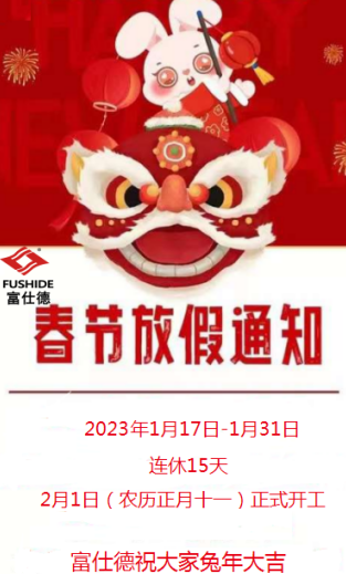 前路浩浩蕩蕩,萬(wàn)事皆期待。感謝各位客戶朋友的信任與支持,一起走過(guò)不平凡的2022年。 新春將至,我司春節(jié)放假時(shí)間為:2023年01月17日(十二月二十六)至2023年01月31日(正月初十)共15天,2023年02月01日(正月十一)正式開(kāi)工上班。1月12日起,異地不發(fā)貨,若有帶來(lái)…2023-01-07查看詳情 -