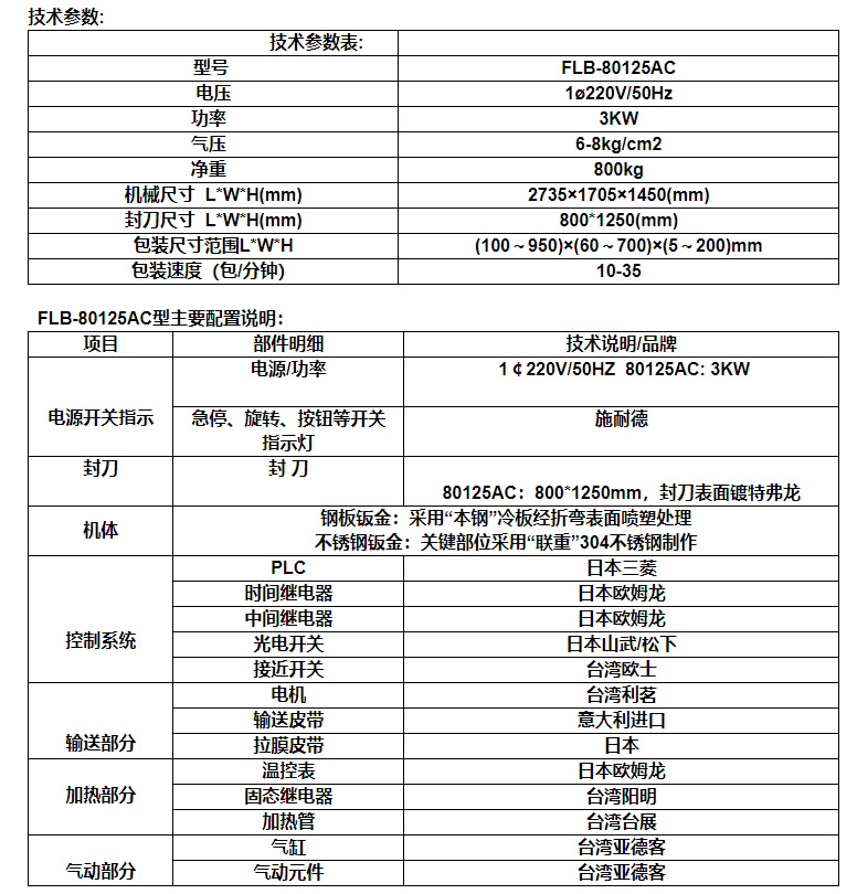 包裝速度:(包/分鐘)10-35