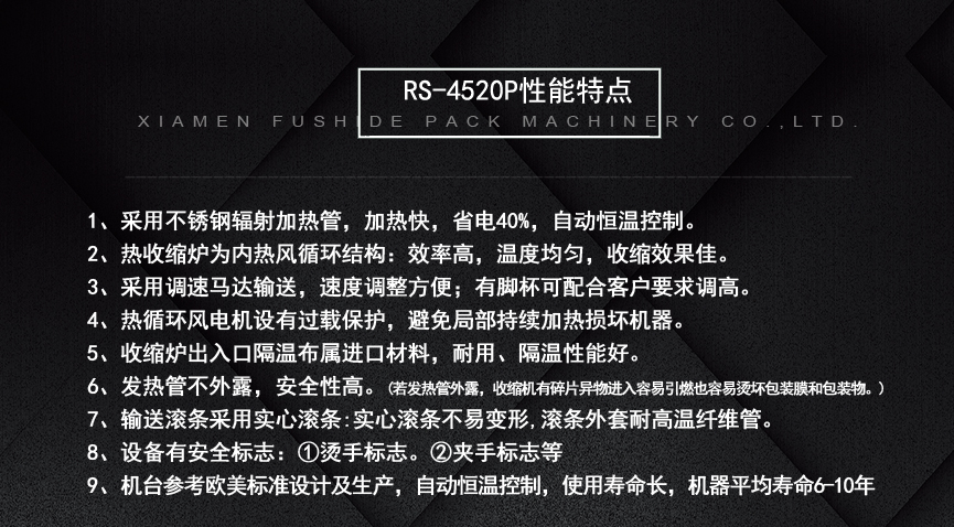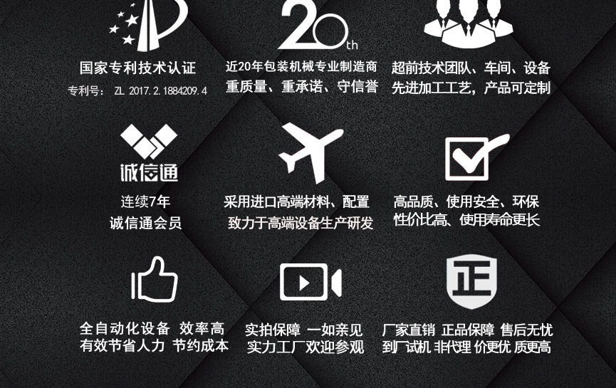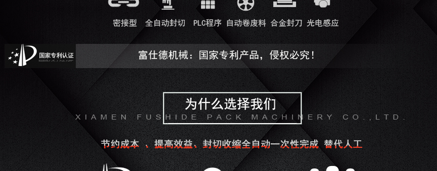 擁有多項(xiàng)專利技術(shù) 數(shù)千平標(biāo)準(zhǔn)廠房 批量標(biāo)準(zhǔn)化生產(chǎn) 可定制開發(fā)和自動(dòng)化流水線搭建! 超前技術(shù)團(tuán)隊(duì) 先進(jìn)加工工藝 高精度加工設(shè)備 近20年專業(yè)研發(fā)經(jīng)驗(yàn)不斷改進(jìn)、創(chuàng)新、突破!我們定位于專注做中高端全自動(dòng)熱收縮膜包裝機(jī),請(qǐng)不要拿我們和不同定位的廠家對(duì)比!我們是源頭工廠…