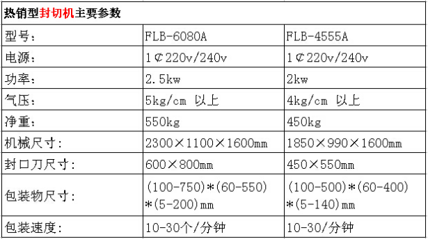 封切機(jī)參數(shù):