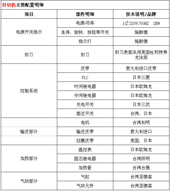 封切機(jī)配置: