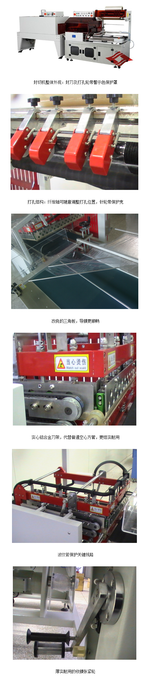 ②發(fā)熱管不外露,安全性高。若發(fā)熱管外露,收縮機(jī)有碎片異物進(jìn)入容易引燃,也容易燙壞包裝膜和包裝物。