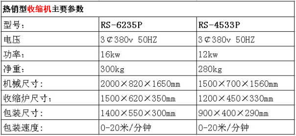 收縮機(jī)參數(shù):