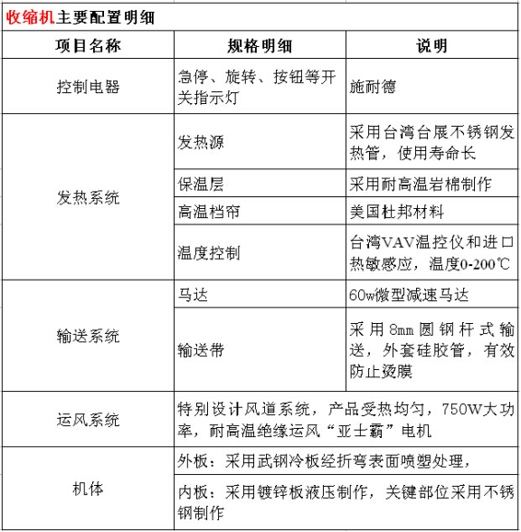收縮機(jī)配置: