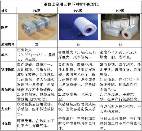 市面上常用三種不同材料膜對比: