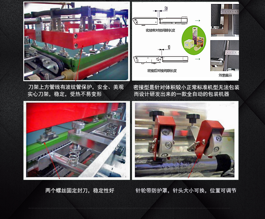 ●采用國際知名電器元件,封切過程綠色環(huán)保,保證了包裝機(jī)的高質(zhì)量高性能。