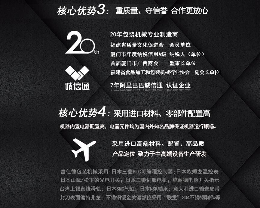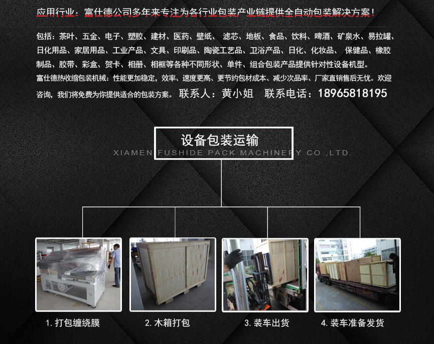 廈門富仕德包裝機(jī)械有限公司,專業(yè)生產(chǎn)銷售熱收縮膜包裝機(jī),收縮機(jī),煙包機(jī),打包機(jī),連續(xù)封口機(jī),封箱機(jī),拉伸膜纏繞機(jī),打碼機(jī),折紙機(jī),電磁感應(yīng)封口機(jī),手提電動(dòng)縫包機(jī)等。 聯(lián)系電話:0592-5058133 / 18965818195 (手機(jī)) 聯(lián)系人:黃經(jīng)理 地址:廈門市同安區(qū)環(huán)東海域湖里工業(yè)園78號(hào)