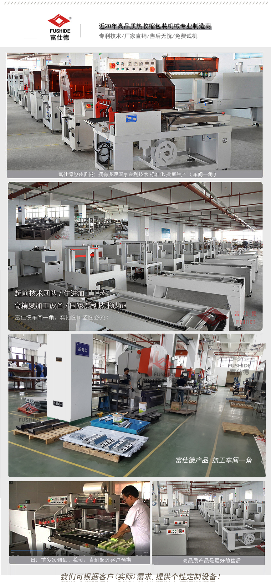廈門(mén)市富仕德包裝機(jī)械有限公司總部位于福建省廈門(mén)市,是一家成立近20年,專(zhuān)業(yè)從事高端熱收縮包裝機(jī)的研發(fā)、設(shè)計(jì)、制造和銷(xiāo)售為一體的實(shí)業(yè)公司,擁有多個(gè)系列全自動(dòng)熱收縮膜包裝機(jī)械產(chǎn)品。公司自創(chuàng)辦以來(lái):一直"以質(zhì)量贏信譽(yù),以信譽(yù)創(chuàng)品牌,以品牌贏市場(chǎng)"的經(jīng)營(yíng)理念,狠抓企業(yè)內(nèi)部生產(chǎn)管理,注重科技創(chuàng)新和工匠精神,產(chǎn)品不斷更新、品質(zhì)日趨卓越、性能更加穩(wěn)定、結(jié)構(gòu)更具人性化合理化;公司始終一如既往為我們的品牌客戶(hù),提供優(yōu)質(zhì)可靠產(chǎn)品和完善的售后服務(wù),與之共同發(fā)展,共創(chuàng)佳績(jī)。