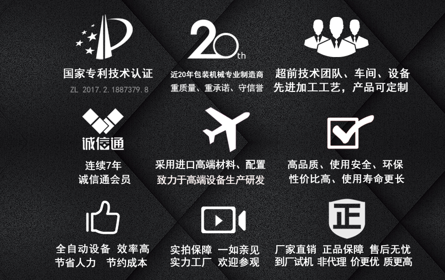 擁有多項(xiàng)專利技術(shù) 數(shù)千平標(biāo)準(zhǔn)廠房 批量標(biāo)準(zhǔn)化生產(chǎn) 可定制開(kāi)發(fā)和自動(dòng)化流水線搭建! 超前技術(shù)團(tuán)隊(duì) 先進(jìn)加工工藝 高精度加工設(shè)備 近20年專業(yè)研發(fā)經(jīng)驗(yàn)不斷改進(jìn)、創(chuàng)新、突破!我們定位于專注做中高端全自動(dòng)熱收縮膜包裝機(jī),請(qǐng)不要拿我們和不同定位的廠家對(duì)比!我們是源頭工廠…