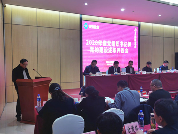 2020年度黨組織書記抓黨的建設工作述職評議會,蕪湖市鹽業(yè)公司、滁州市鹽業(yè)公司、蚌埠市鹽業(yè)公司黨組織書記現場述職,其他黨組織書記作書面述職。公司黨委書記、執(zhí)行董事、總經理王奇對3位現場述職的同志進行點評,與會人員對各市公司黨組織書記進行了評議。